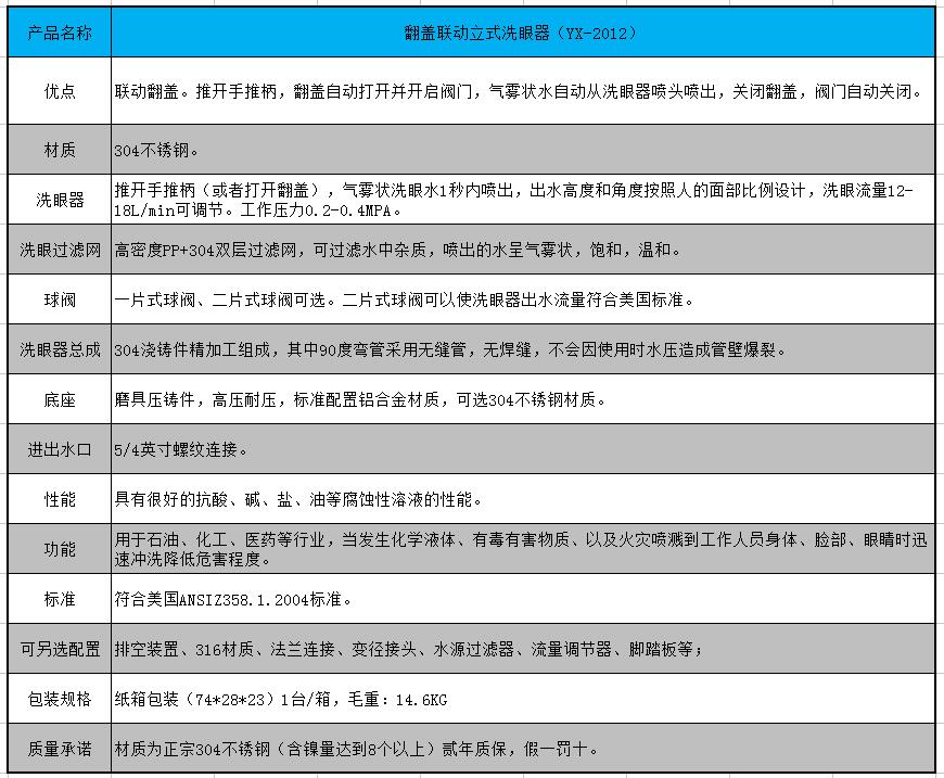 YX-2012翻蓋聯(lián)動立式洗眼器